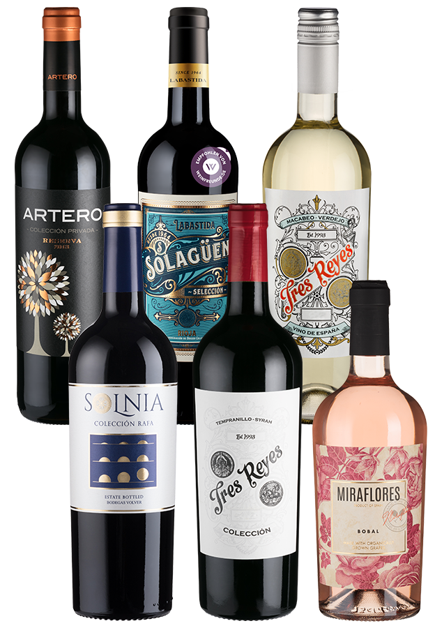 Vielseitigkeit aus einem oftmals unterschätzten Weinland: Tres Reyes liefern einen erfrischenden Weißwein sowie den „großen Bruder“ unseres Wein des Jahres 2016. Der Miraflores Rosé sorgt für Frucht im Überfluss, der Solagüen ist ein moderner Rioja und der Reserva aus 2014 liefert Reife pur. Auch mit dabei: unser Wein des Jahres 2019, Solnia. Eine abwechslungsreiche Auswahl für Weinliebhaber und Neugierige.