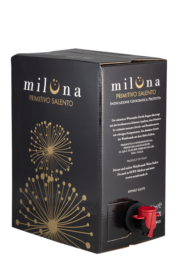 Miluna Primitivo Salento Bag-in-Box – 5,0 L (2024) – Cantine San Marzano – Rotwein aus Apulien, Italien bei Weinfreunde
