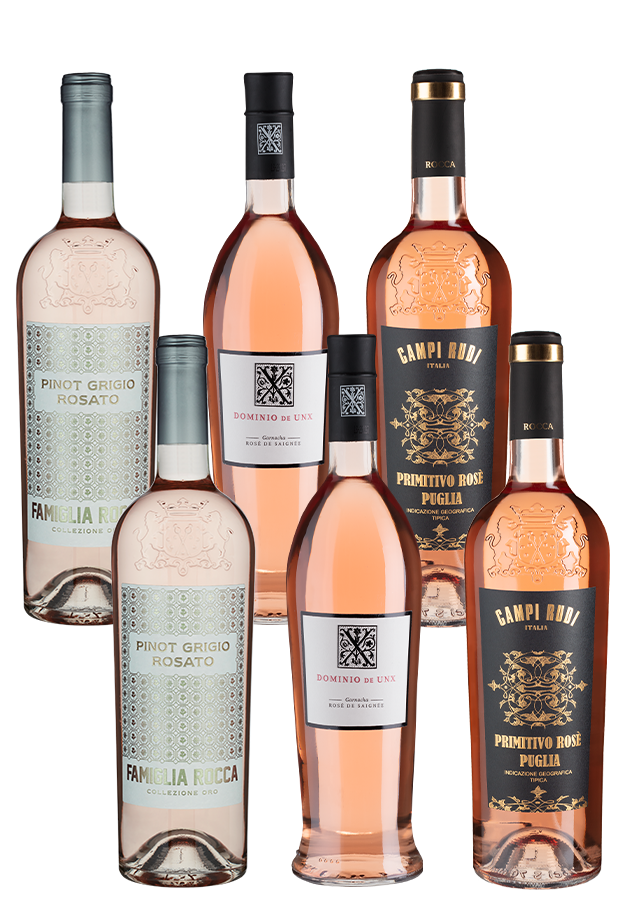 Frisch, fruchtig, sommerlich – dieses Paket ist perfekt für alle Rosé-Fans! Freu dich auf je zwei Flaschen des zarten Pinot Grigio Rosato und des saftigen Primitivo Rosato von Angelo Rocca sowie des aromatischen Garnacha-Rosés von Dominio de Unx. Ideal zum Anstoßen, Entspannen und Genießen! Eine abwechslungsreiche Auswahl für Weinliebhaber und Neugierige.