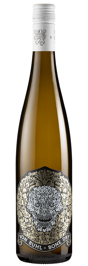 Das Besondere an diesem Wein Die Macher der Weine von Reichsrat von Buhl sind bekennende Fans von trockenen Weinen. Damit meinen sie nicht etwa Weißweine, die laut Weinrecht bis zu 9 Gramm Zucker pro Liter enthalten dürfen, sondern Weine, die maximal 4 Gramm Süße aufweisen. Da für von Buhl also das Prinzip „weniger ist mehr“ greift, wurde ein Wein ins Leben gerufen, der die Kennzeichnung „trocken“ doppelt und dreifach unterstreicht. Nicht nur durch die Namensgebung und die Gestaltung des Weins, sondern durch die Tatsache, dass der Bone Dry in der Tat knochentrocken ist. Dies beschert dem Wein eine Stilistik, die alles andere als gewöhnungsbedürftig ist. Im Gegenteil: Der Bone Dry wirkt wunderbar klar und präzise und die intensive Frucht lässt zunächst gar nicht auf so einen geringen Restzucker schließen. Auffällig gut! Auffällig auch das außergewöhnliche Etikett. Der Totenkopf symbolisiert die knochentrockene Stilistik und wird durch kleine, die Aromen des Weins symbolisierende Gestaltungselemente ergänzt. Alles in allem ein wunderbar gemachter Riesling-Genuss aus der Pfalz, der auf jedem Tisch sofort zum Hingucker wird. Wie der Wein schmeckt: fruchtig & frisch Mit hellem Gelb fließt dieser Riesling ins Glas. Der Duft ist sehr intensiv und ist vor allem geprägt durch reifes gelbes Steinobst sowie Abrieb von Zitrusschalen. Im Mund mit sehr präziser, perfekt eingebundener Säure und einer Betonung der Zitrusaromatik – Limette spielt sich in den Vordergrund. Trotz der trockenen Charakteristik ausreichend saftig wirkend. Im Abgang sehr vital und trinkanimierend. Perfekt, um den Moment zu genießen – ob solo oder zum Essen.
