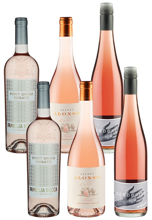 Die ganze Rosé-Vielfalt in einem Paket! Vom spanischen Rosado, der etwas kräftiger daherkommt und gut zu Essen passt, über Rosé aus der nördlichen Pfalz, der eine attraktive Mischung von französischen und Pfälzer Sorten darstellt, bis hin zu etwas ganz ungewöhnlichem: Rosé aus einer Weißweinsorte. Das geht nur mit Grauburgunder (Pinot Grigio), weil das die Weißweinsorte mit der dunkelsten Schale ist. Es gibt viel zu entdecken! Eine abwechslungsreiche Auswahl für Weinliebhaber und Neugierige.
