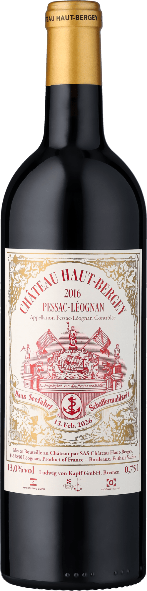 Roter Schafferwein 2026 »Schaffen, Schaffen unnen un boven, unnen un boven Schaffen!«Wie einst auf den Segelschiffen üblich wird mit diesen Worten alljährlich am zweiten Freitag im Februar bei der Bremer Schaffermahlzeit zu Tisch gebeten. In der oberen Halle des alten Bremer Rathauses kommen dann etwa 100 auswärtige Gäste sowiie je 100 kaufmännische und seemännische Mitglieder des Hauses Seefahrt Platz zusammen und feiern das älteste Freundschaftsmahl der Welt – seit 1545.Während der Bremer Schaffermahlzeit sitzt man etwa vier Stunden am Tisch und hört zahlreiche Reden. Die Speisenfolge ist seit Jahrhunderten unverändert und äußerst umfangreich: Es gibt Hühnersuppe, Stockfisch und das Bremer »Nationalgericht« Grünkohl mit Pinkel sowie Kalbsbraten, Käse und Obst. Besondere Aufmerksamkeit genießen die zur Schaffermahlzeit gereichten Weine. Die Schafferweine in Rot und Weiß werden jedes Jahr in aufwändigen Verkostungen gewählt und tragen das Sonderetikett des Hauses Seefahrt – eine begehrte Prämierung, wertvoller als so manche Goldmedaille.2016 Château Haut-Bergey – Roter SchafferweinDer rote Schafferwein 2026 stammt vom renommierten Château Haut-Bergey in der Appellation Pessac-Léognan und steht beispielhaft für die große Weintradition des Bordelais. Die Weinberge des Guts liegen auf kieselhaltigen Böden mit tonigem Untergrund, die den Reben optimale Drainage und zugleich Tiefe verleihen. Die Lese erfolgt ausschließlich von Hand, um nur bestes, physiologisch reifes Traubenmaterial auszuwählen. Der hervorragende Bordeaux-Jahrgang 2016 brachte schließlich einen Haut-Bergey von besonderer Güte hervor.Die Cuvée vereint Merlot und Cabernet Sauvignon zu je gleichen Anteilen von 40%, ergänzt durch Cabernet Franc sowie kleine Zugaben Petit Verdot und Malbec. Nach einer langen Maischestandzeit mit sanfter Extraktion reifte der Wein 14 bis 16 Monate in französischen Eichenfässern. Dieses behutsame Vorgehen verleiht ihm Struktur, Tiefe und Eleganz, ohne die Frische und Frucht zu überlagern. Im Glas zeigt sich der Schafferwein in dichtem Rubinrot. Das Bukett offenbart Aromen von schwarzen Johannisbeeren, reifen Pflaumen und Kirschen, unterlegt von feinen Röstaromen, Gewürzen und einer mineralischen Note. Am Gaumen präsentiert sich der 2016 Château Haut-Bergey 10 Jahre nach der Ernte in perfekter Reife. Er ist ausgewogen und präzise, mit geschliffenen Tanninen, lebendiger Säure und langem, harmonischem Nachhall. Seine Stilistik verbindet Kraft mit Finesse und macht ihn zu einem idealen Begleiter für die klassische Küche der Schaffermahlzeit ebenso wie für moderne, anspruchsvolle Gerichte. Wir freuen uns, Ihnen diesen charaktervollen Bordeaux in limitierter Sonderedition anbieten zu können.Mehr über die Schaffermahlzeit und ihre Weine erfahren Sie auf unserem Blog. Ideal für alle, die das Leben mit einem guten Tropfen feiern möchten.