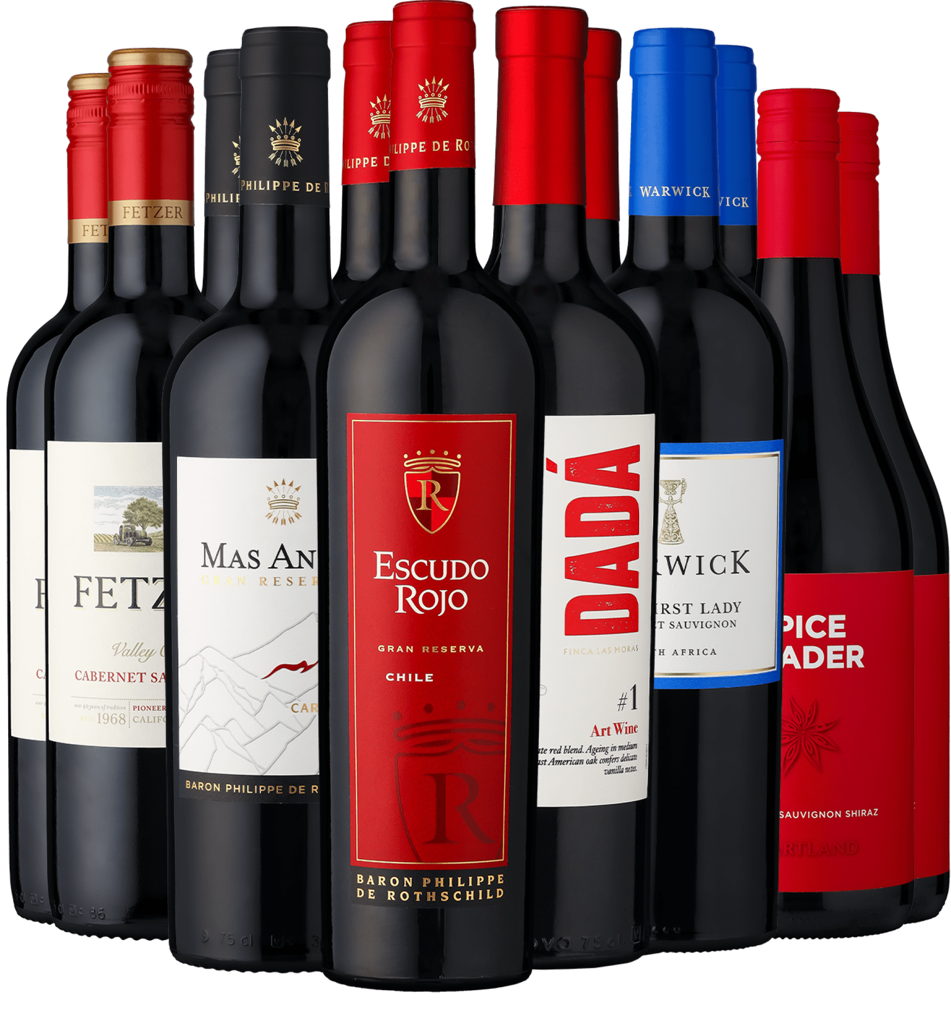 Bereit für ein spannendes Abenteuer? Wir laden Sie zu einem unvergesslichen Weinabenteuer ein, dass Sie in die fernen Länder und Regionen Übersees entführt. Entdecken Sie die faszinierende Welt des Weins, die dort aus Sie wartet! Unser Paket bietet sechs sorgfältig ausgewählte edle Tropfen aus Übersee in doppelter Ausführung – Von den sonnenverwöhnten Weinbergen Südafrikas bis zu den malerischen Weinbergen Neuseelands werden Sie eine Vielzahl von Aromen und Geschmackserlebnissen erleben.Probieren Sie unseren Kundenliebling: den Finca Las Moras Dadá No. 1. Diese saftige Rotwein-Cuvée aus Argentinien besticht mit feiner Restsüße und würzigem Biss. Eine weitere Cuvée der Winzerikone Ben Glaetzer und seinen »Heartland Wines« rockt seit 2012 die Weinwelt! Der Heartland »Spice Trader« überzeugt mit kräftigen Fruchtaromen von Blaubeeren, Brombeeren und Johannisbeeren. Der Fetzer Valley Oaks Cabernet Sauvignon weiß die wärmeren Weinlagen Kaliforniens sehr zu schätzen. Genau diese Bedingungen sind es die diesem Cabernet Sauvignon seine kräftigen Aromen von schwarzen Kirschen und Schokolade verleihen. Die »The First Lady« Cabernet Sauvignon vom Warwick Estate verführt mit Aromen von süßen Brombeeren, Kirschen, Tabak, dunkler Schokolade und einem Hauch Zimt. Abgeschlossen wird das Paket durch zwei Klassiker von der Rothschild Familie. Genießen Sie den Mas Andes Reserva Carménère mit seinen Aromen von schwarzen Früchten, Pfeffer und einer leichten Vanillenote und die trockene Rotwein-Cuvée aus Chile mit schönen Fruchtaromen und einer leichten Würze.Schlagen Sie jetzt zu und sichern Sie sich sechs edle Tropfen von Übersee! Ideal für alle, die das Leben mit einem guten Tropfen feiern möchten.