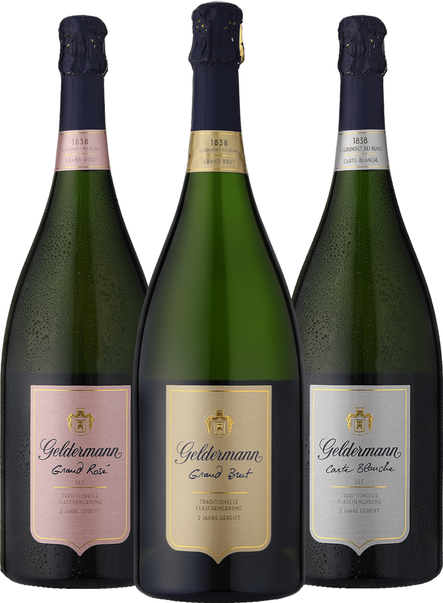Big Bottle Sparkle Wenn die Flasche doppelt so groß ist, fühlt sich der Anlass automatisch besonderer an. Dieses Probierpaket bringt dir drei Geldermann-Klassiker in der 1,5l-Magnumflasche auf den Tisch. Grand Rosé, Grand Brut und Carte Blanche stehen für traditionelle Flaschengärung, feine Perlage und einen Stil, der Eleganz ganz entspannt vermittelt. Was sie verbindet, ist die präzise Handwerkskunst und die Reifezeit, die für feine, anhaltende Bläschen sorgt. In der Magnum wirkt das Prickeln oft noch harmonischer und runder. Die Unterschiede zeigen sich im Charakter. Mal steht frische Frucht im Vordergrund, mal eine klare, trockene Linie, mal eine weichere, zugängliche Art. Dieses Paket ist wie gemacht für Geburtstage, Hochzeiten oder Sommerfeste im Garten. Große Flasche, großer Auftritt, großes Lächeln. Ideal für alle, die das Leben mit einem guten Tropfen feiern möchten.